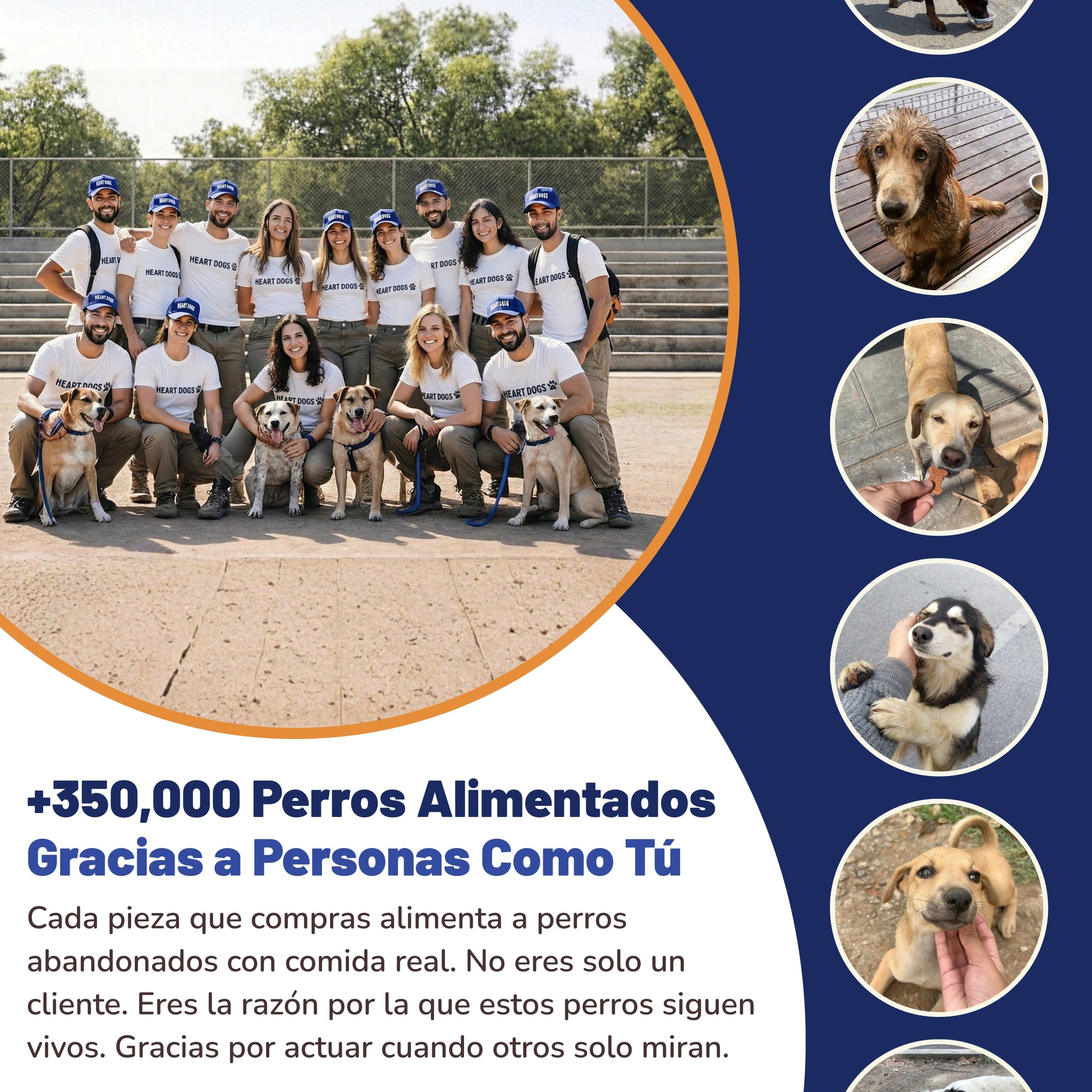 Cada pieza = 10 perros alimentados. Recibirás tus primeras fotos en 30 días.